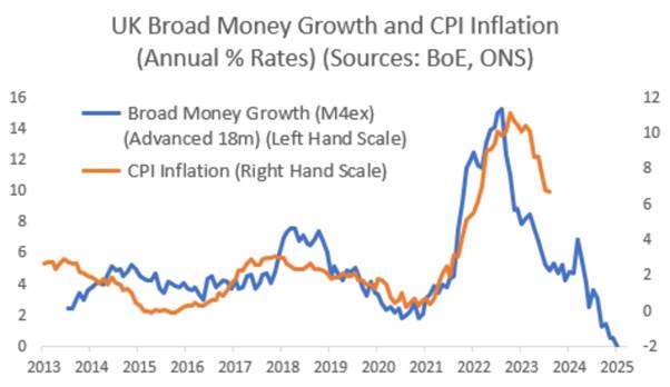 If we saw a diagram like this with the money supply increasing while inflation is falling and inflation falling while the money supply is increasing then we might be easily persuaded that there is no correlation between the growth in money and inflation giving support to those who criticise the monetary cause of inflation.